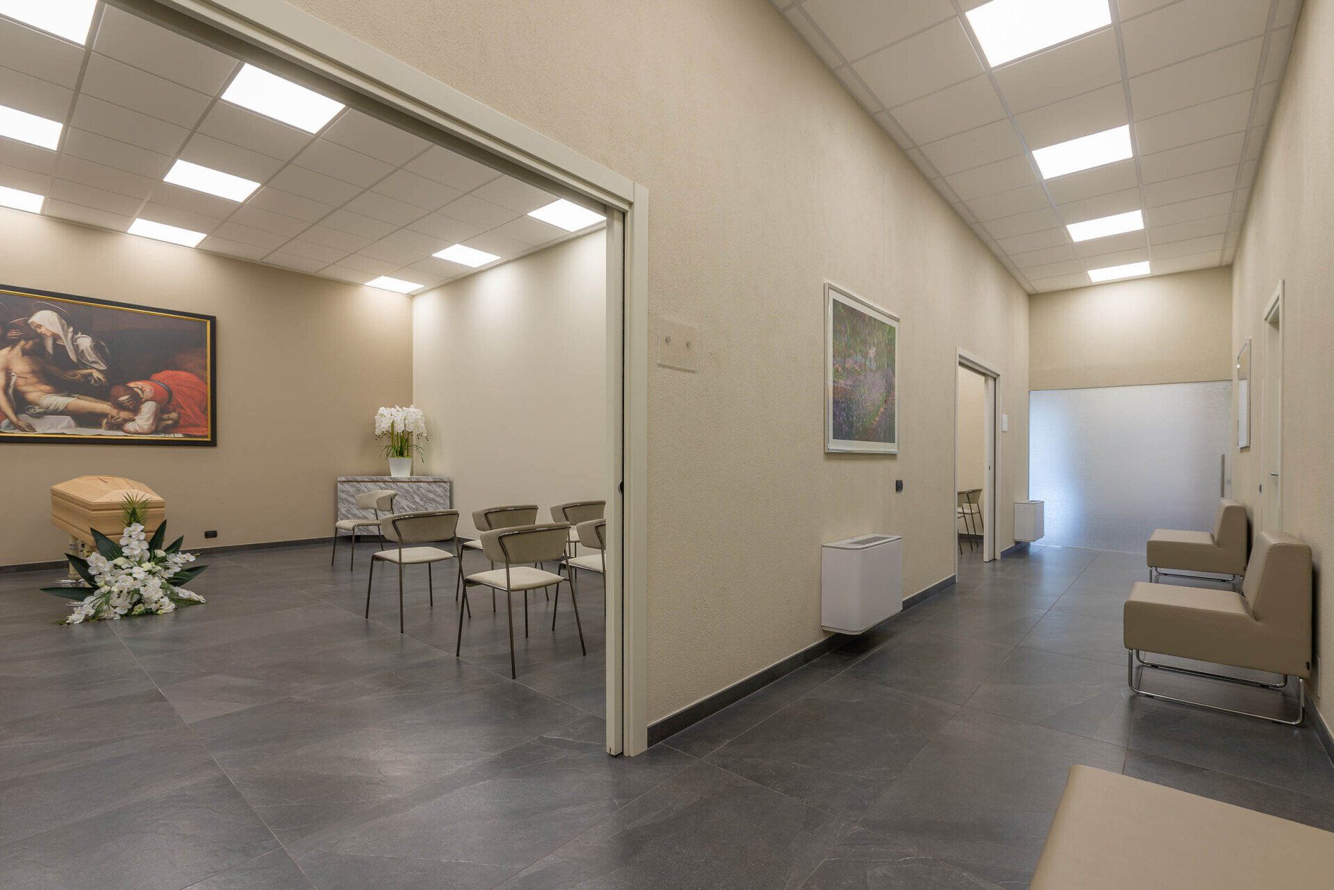 Lo staff è reperibile 24 ore su 24, 7 giorni su 7, per provvedere all’organizzazione del funerale: dal recupero della salma tramite mezzi di proprietà all'allestimento delle tre sale commiato, preparate adeguatamente per ricevere le visite di parenti, amici e conoscenti.